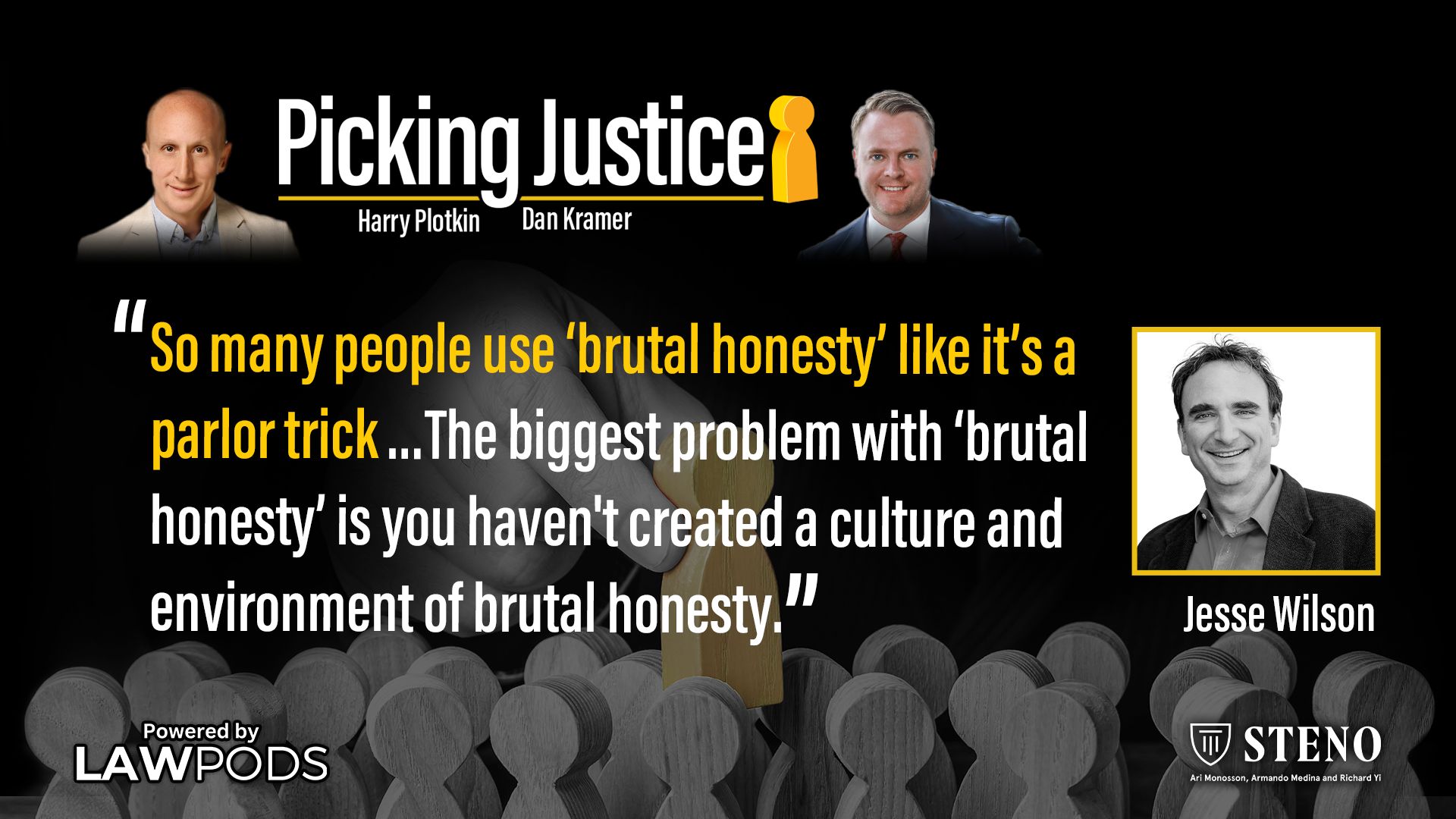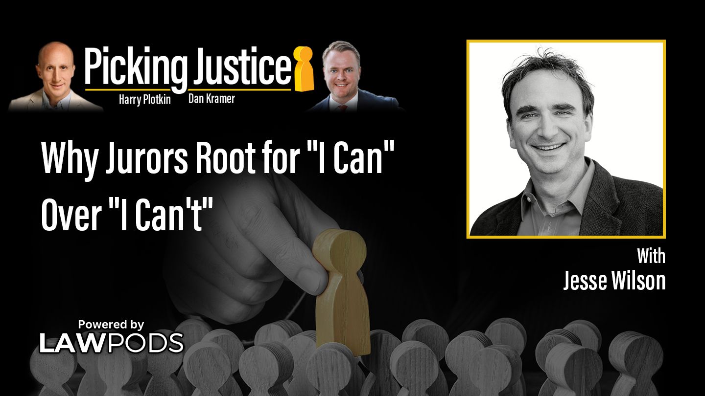 In this conversation with hosts Dan Kramer and Harry Plotkin, Jesse explains that jurors respond more powerfully when they see strength rather than just suffering.